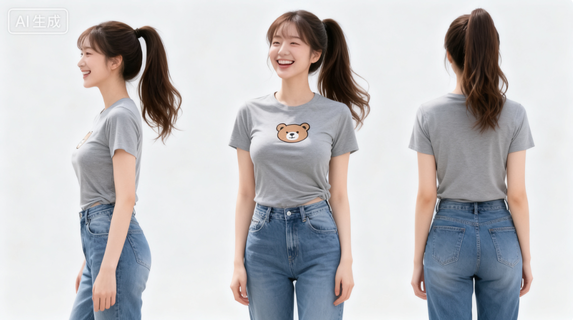然后,在对话框中输入提示词“三视图,展示在同一张16:9的图片里。”豆包生成的效果如下: