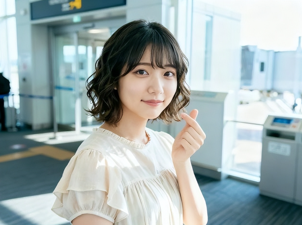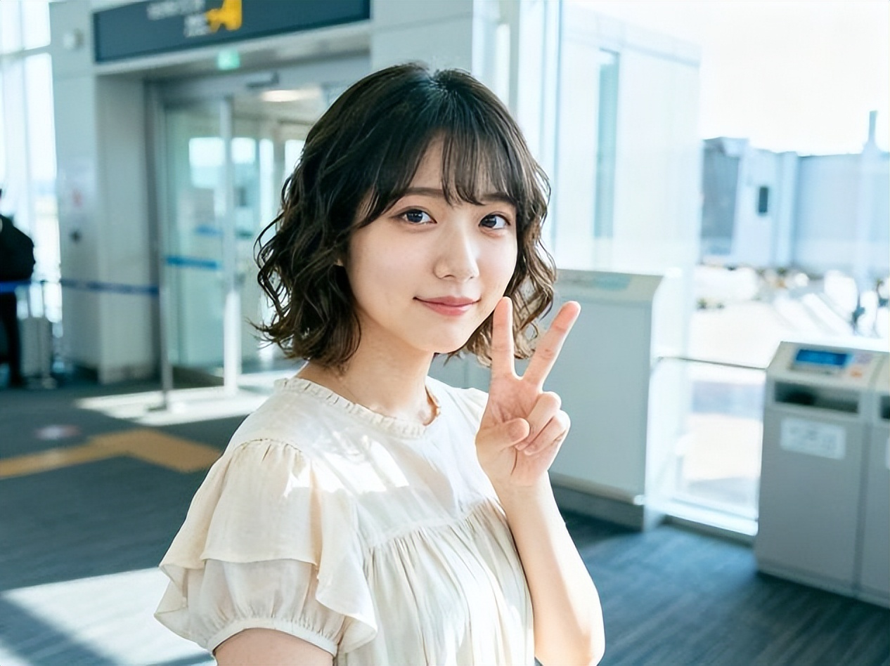 与豆包直接连续对话,继续在对话框中输入提示词:再直接将人物手势变成单手拇指和食指的比心。生成的图片如下: