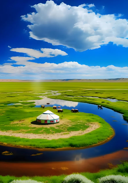 在豆包中上传一张大草原图片(大草原.png),图片如下: