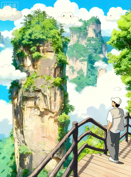 然后,在对话框中输入提示词“将这张照片转换成吉卜力动画风格,色彩明亮,天空有云朵。”,生成的图片如下: