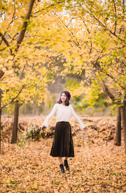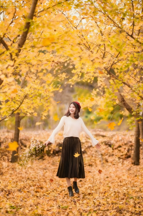 然后,在对话框中输入提示词“为画面中添加漫天飘落的黄色枫叶,营造浪漫氛围”,生成的图片效果如下: