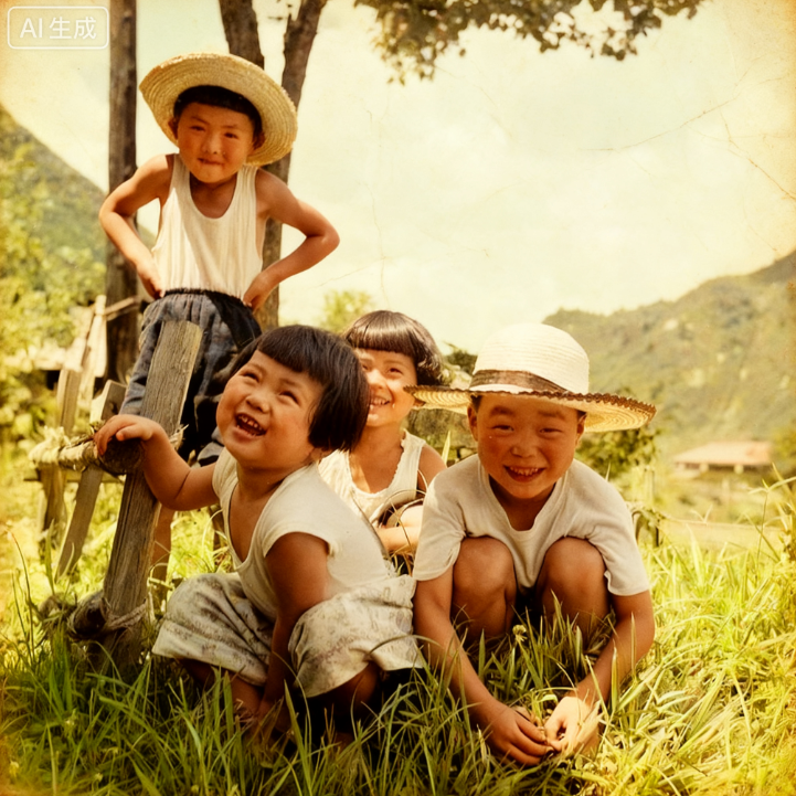 然后,在对话框中输入日诗词:“修复这张老照片,去除所有折痕和污点,提高清晰度,并为其自然地填充色彩。”,生成的图片效果如下: