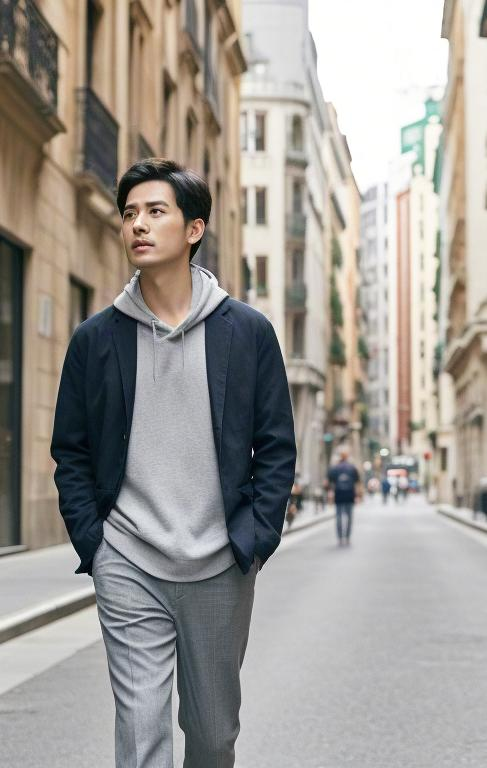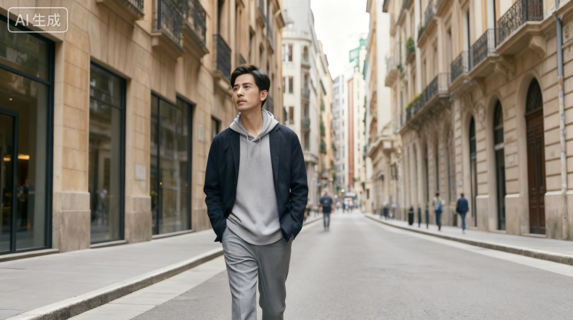 在豆包中上传一张图片(男士逛街.jpg),如下:
