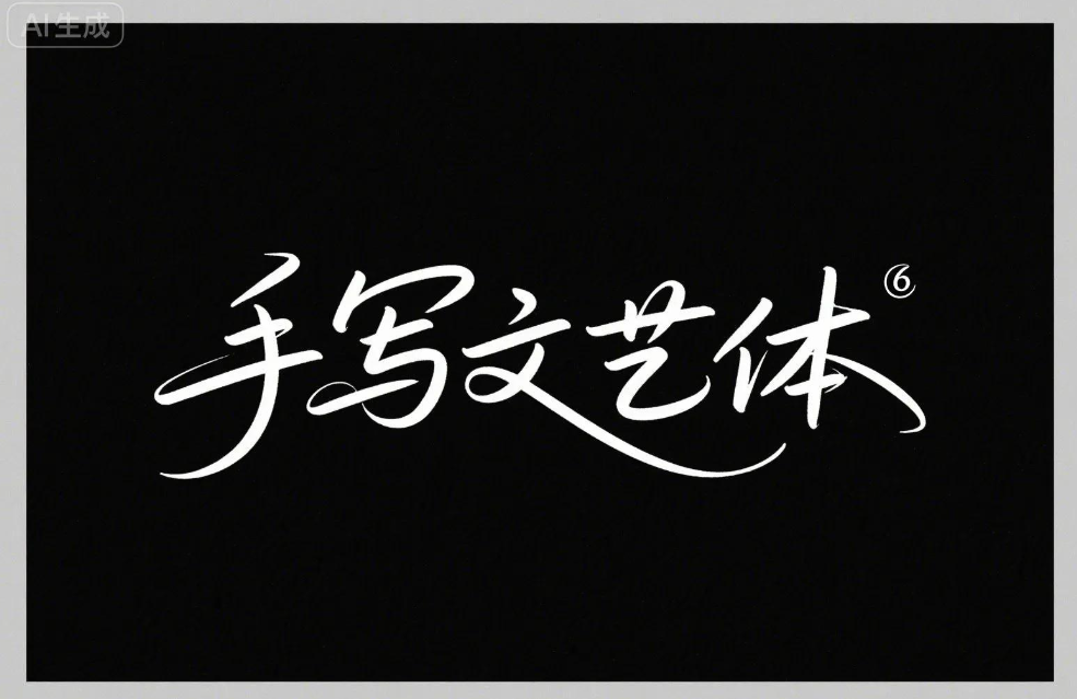 输入提示词“生成文字“手写文艺体”,深黑底色搭配白色文艺手写字体,流畅连笔,钢笔笔迹,纤细线条勾勒,呈现飘逸灵动的书写质感。”
