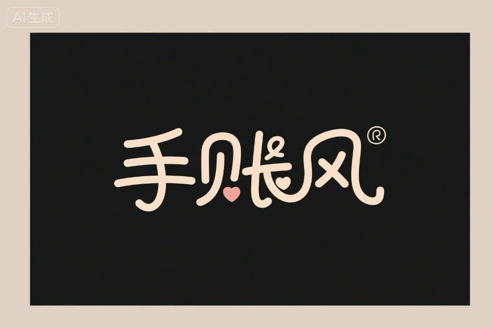 输入提示词“生成文字“手账风字体”,黑色背景,纤细手绘感,圆润亲切,带有点缀图形,给人一种温馨、随性的感觉,适合用于手账、日记等设计。”