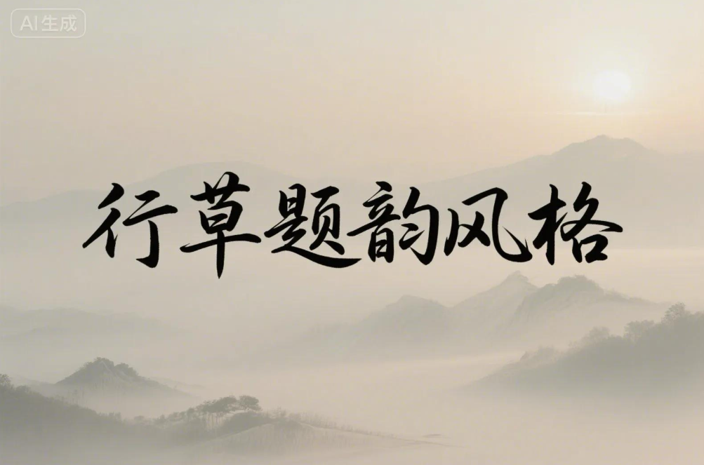 输入提示词“生成文字“行草题韵风格”,毛笔行书韵味,结构丰满均衡,起笔有力果断,笔画流畅自如,背景设计可选用淡雅的水墨山水画或朦胧的晨曦光影,排版简洁高雅”。