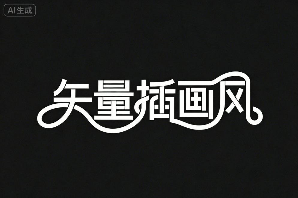 输入提示词“生成文字“矢量插画风”,线条流畅且富有艺术感,将字体进行抽象变形,有独特的节奏感,具有强烈的视觉冲击,适合用于标志设计等。”
