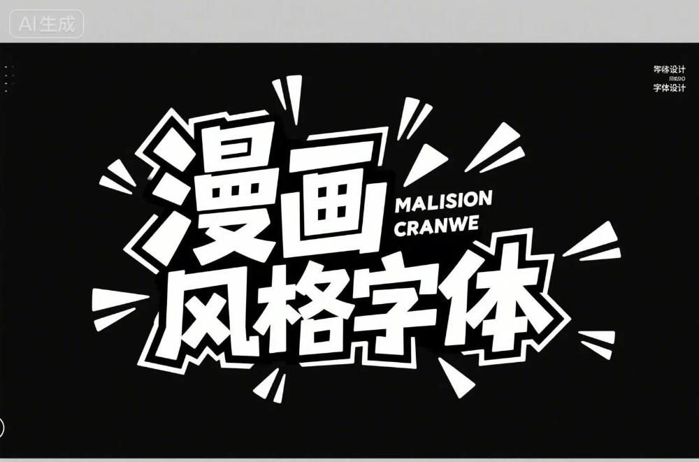 输入提示词“生成文字“漫画风格字体”,深黑背景,白色字体,漫画风格字形,笔画向外扩散,充满动感与张力,笔画末端加粗,文字大小紧凑排列,错落有致,适合表达幽默、活泼的内容。”