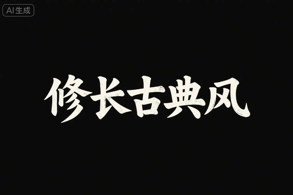 输入提示词“生成文字“修长古典风字体”,深黑底色搭配奶白色字体,字形规整却蕴含书法韵味,笔画遒劲且略显厚重感,简约无衬线风格的大写字体,字体边缘略带粗糙质感,展现出传统与现代交织的美感。”