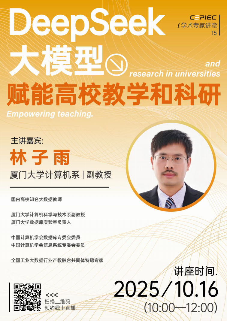 林子雨老师应邀为全国高校教师做大模型讲座直播 林子雨 2025-10-16 0 2025年10月16日上午,应中国教图邀请,林子雨老师通过在线直播方式,为全国高校教师做大模型讲座《DeepSeek大模型赋能高校教学和科研》。(下载厦大团队大模型系列科普报告和讲课视频)