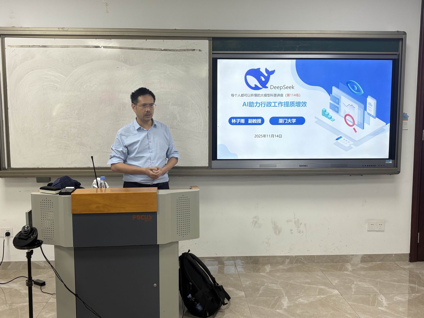 林子雨老师应邀为厦门大学辅导员做大模型科普讲座 林子雨 2025-11-14 5 2025年11月14日上午,林子雨老师应邀为厦门大学新入职辅导员做大模型科普讲座,系统介绍大模型如何提升行政办公效率。(下载厦大团队大模型系列科普报告和讲课视频)