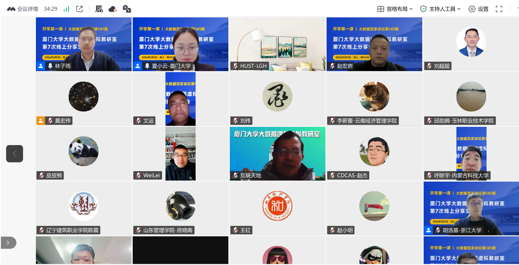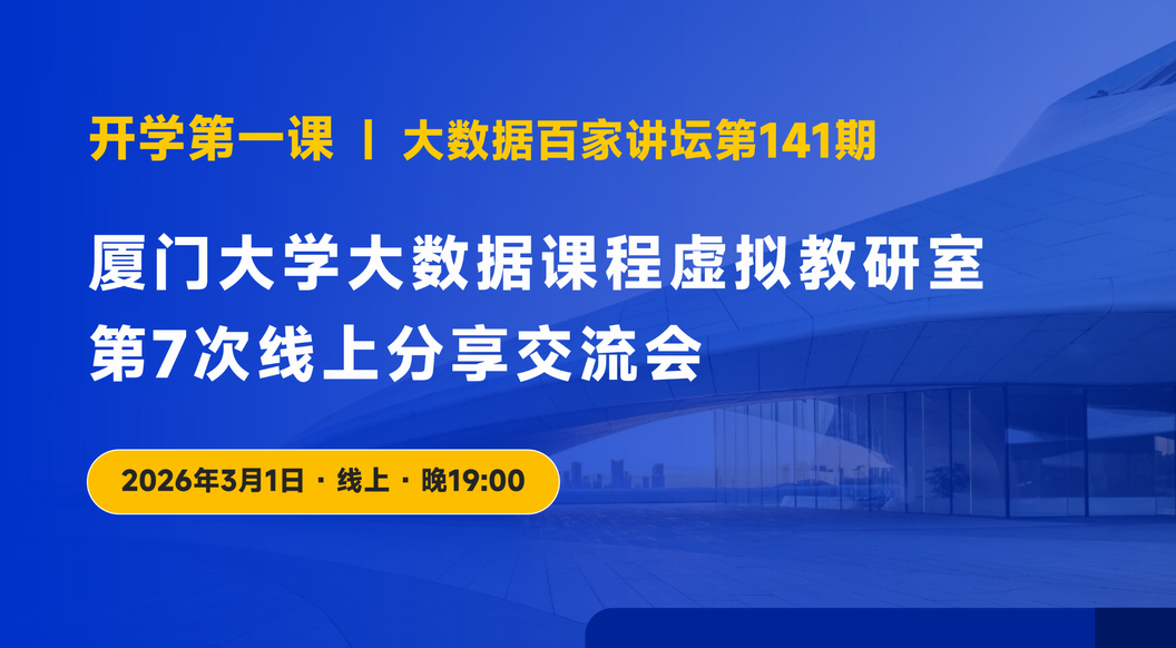 虚拟教研室举行第7次线上活动 林子雨 2026-03-01 0 2026年3月1日晚上7点到10点,厦门大学大数据课程虚拟教研室举行第7次线上活动。本次活动中,哈尔滨工程大学莫宏伟教授、浙江大学胡浩基副教授、厦门大学林子雨副教授做了人工智能专题报告。