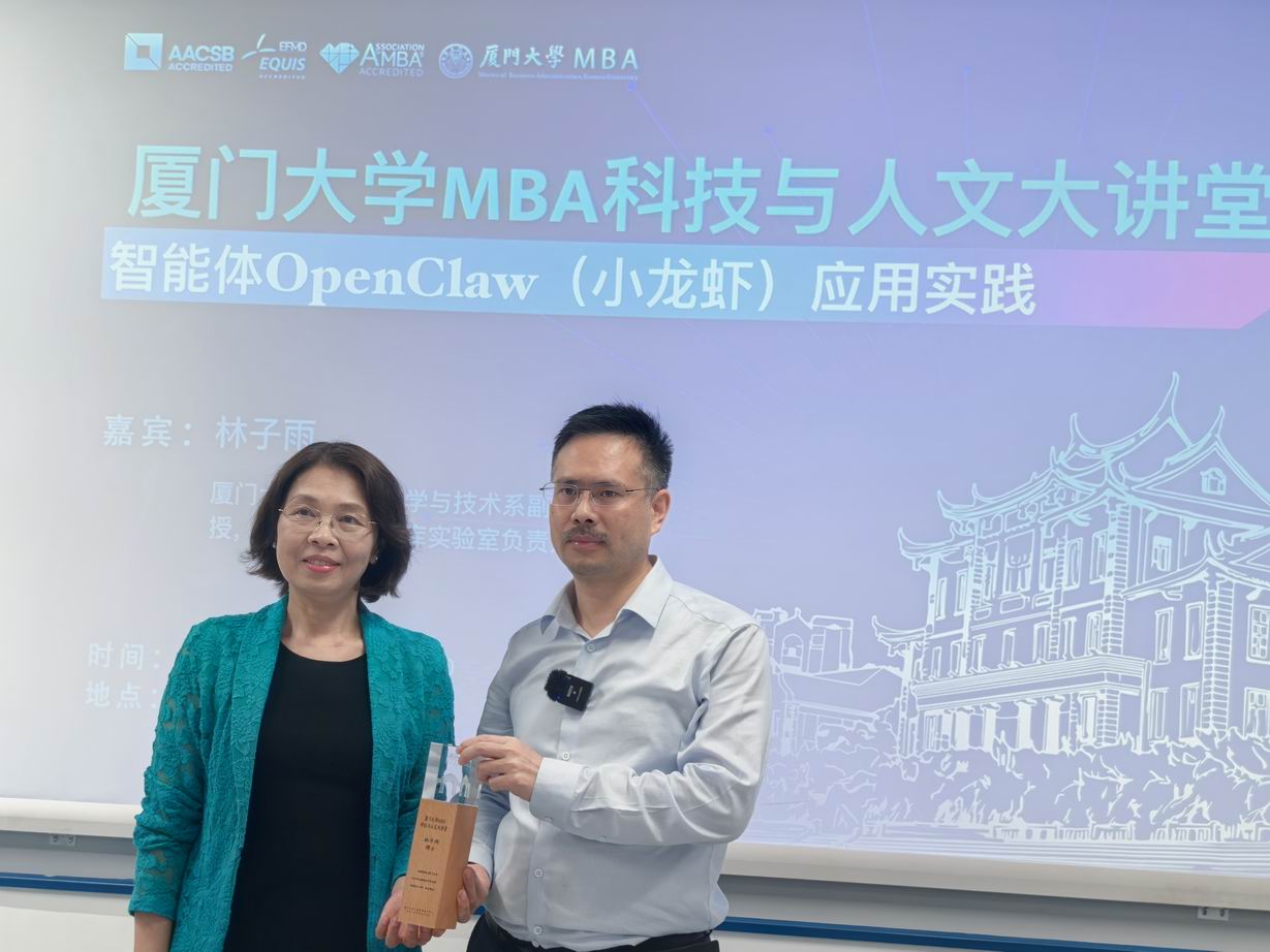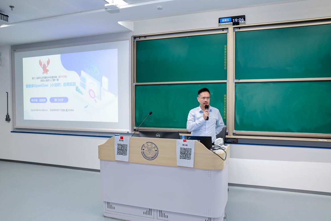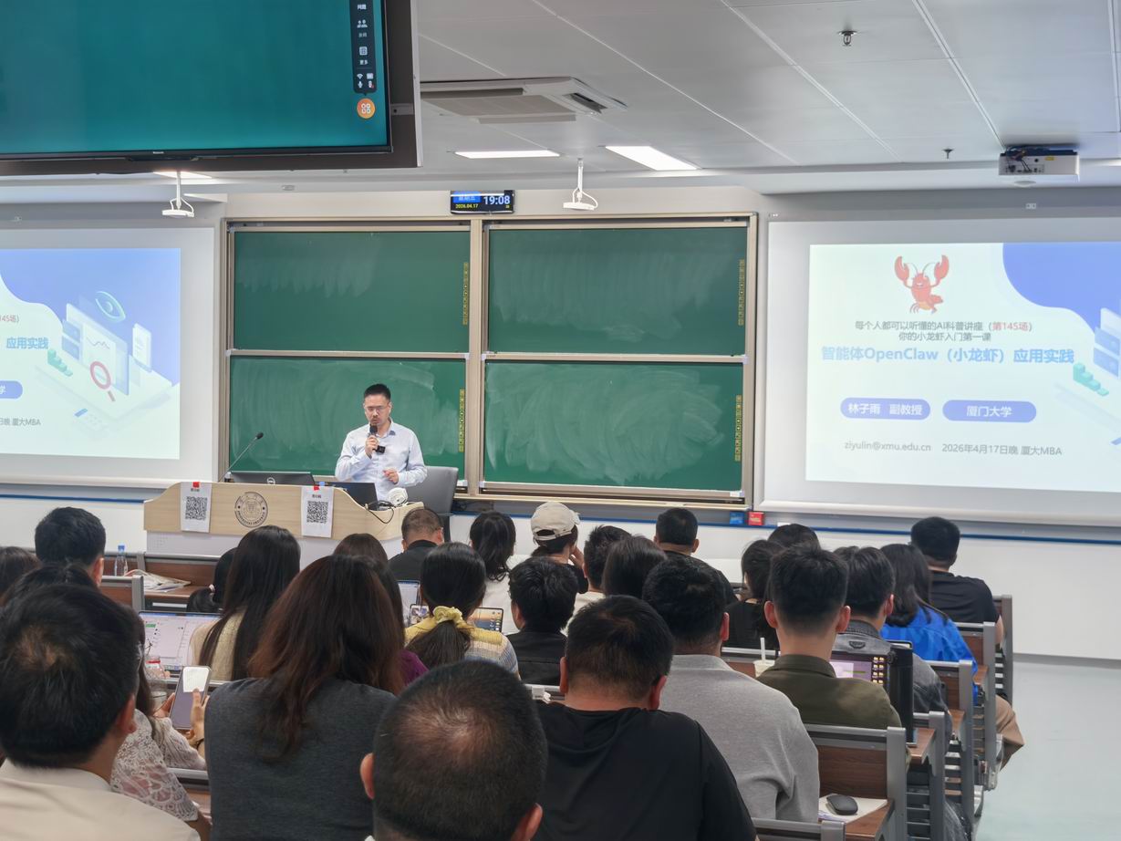 2026年4月17日(周五)晚上7点到9点,应厦门大学管理学院MBA中心邀请,林子雨老师为厦门大学MBA学员做《智能体OpenClaw(小龙虾)应用实践》的专题讲座。