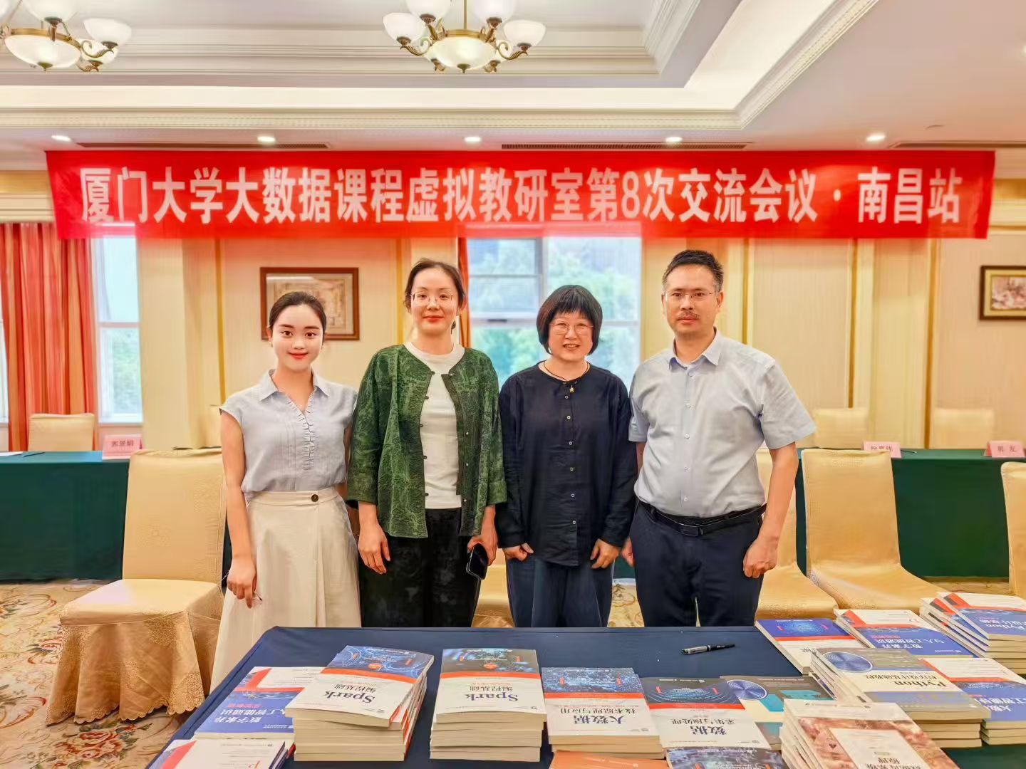 026年4月26日上午,厦门大学大数据课程虚拟教研室第8次交流会(南昌站)在江西省南昌市成功举办,来自江西省各地高校的10余位教师参加了交流会,并针对AI时代如何开展大数据专业教学改革进行了深入探讨交流。人民邮电出版社刘博、王丹出席会议,实验室林子雨和夏小云老师参加了会议,并由林子雨老师做了题为《AI时代的大数据专业教学改革探讨》的报告。