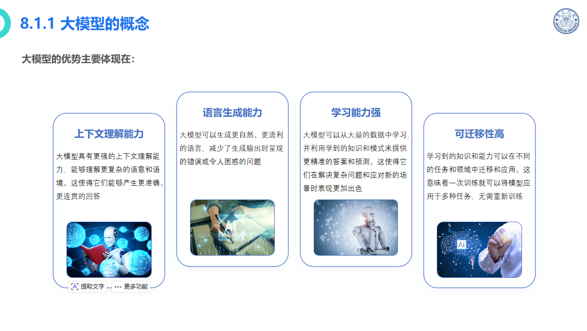 (4)聚焦AI前沿且贴合入门难度,从人工智能概述逐步延伸至机器学习、大模型、AIGC等核心概念与实践,融入AI智能办公技巧,培养学生运用AI工具提升学习和工作效率的思维。